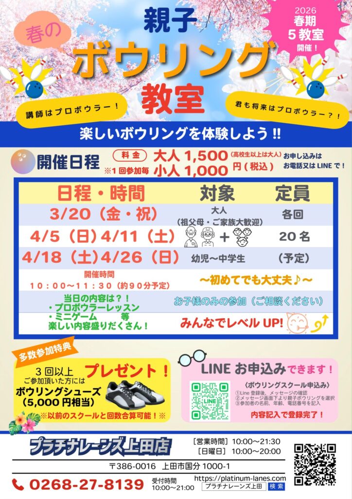 春の親子ボウリングスクール開講!